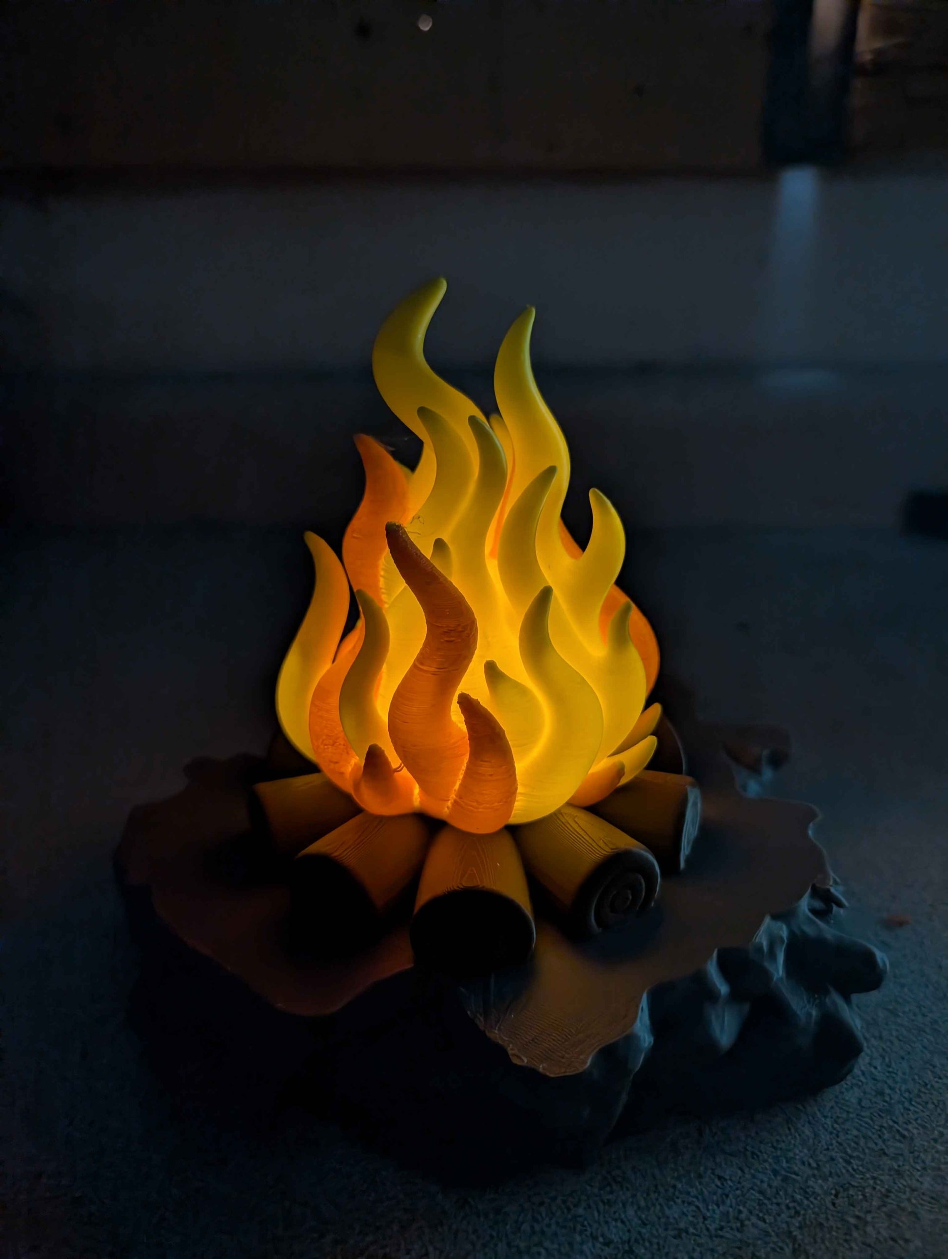 Bring the magic of a glowing campfire indoors with this handcrafted 3D‑printed Camp Fire Night Light. Designed to look like a tiny crackling fire, it gives off a soft, warm glow that instantly adds comfort and atmosphere to any space. Whether you love camping, rustic décor, or simply want a unique ambient light, this little campfire sets the perfect mood.